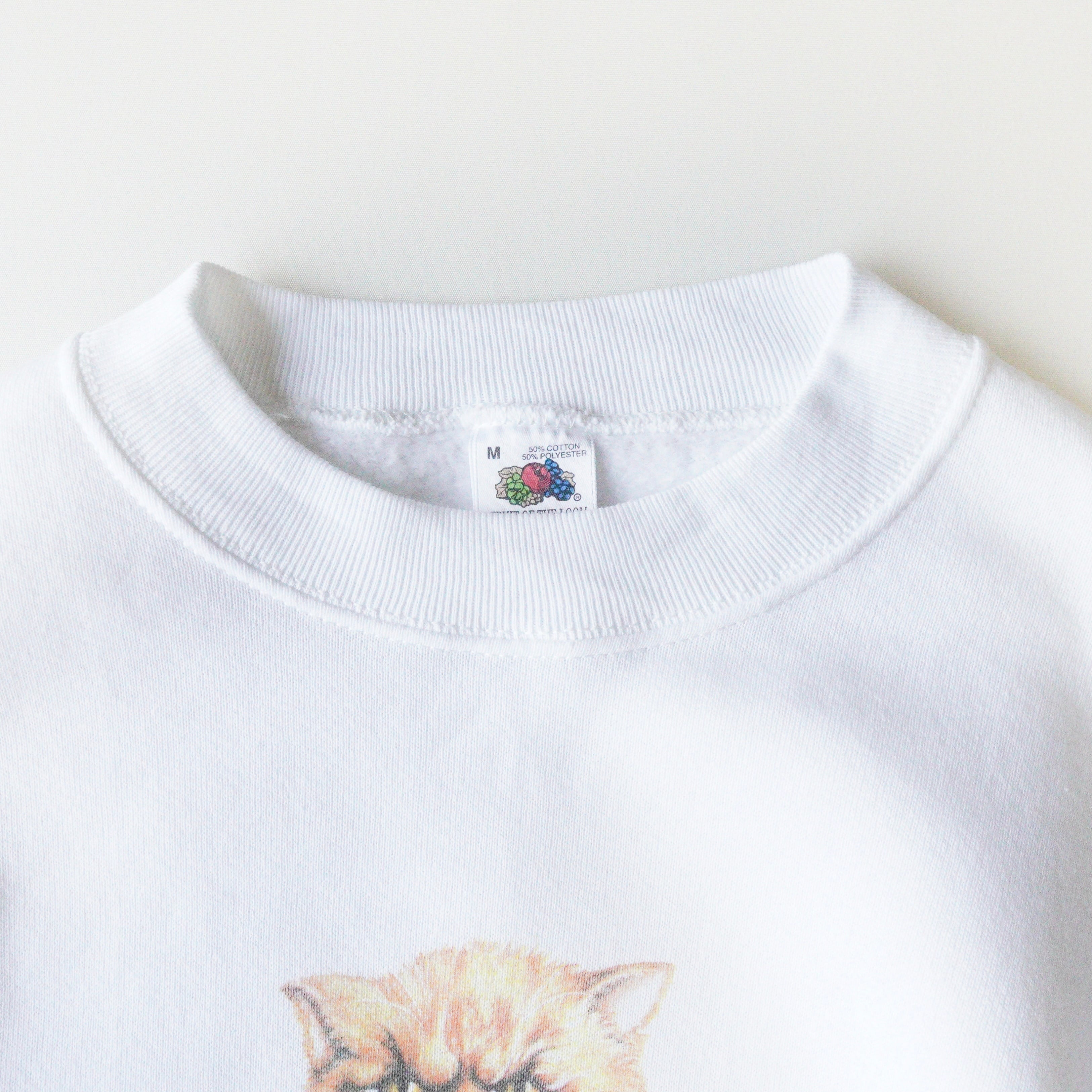 WHAT: "Cat" Fruit of the loom sweat ERA:1990s COLOR:White MATERIAL:Cotton50%/Polyester50% ORIGIN:made in usa SIZE:M LENGTH(着丈):66cm SHOULDER(肩幅):53.5cm PIT(身幅):50.5cm SLEEVE(袖丈):59.5cm CONDITION:比較的状態の良いused商品となります。