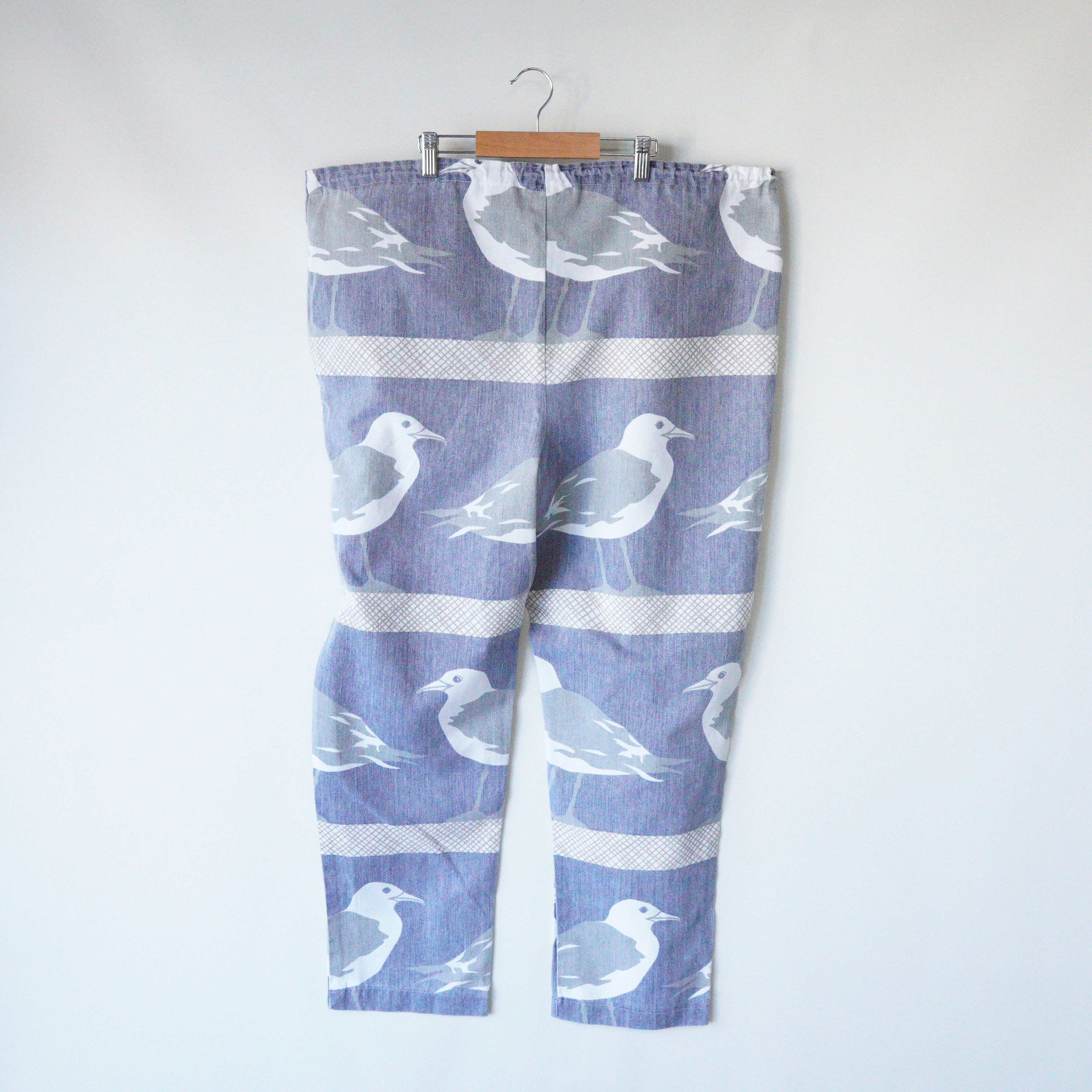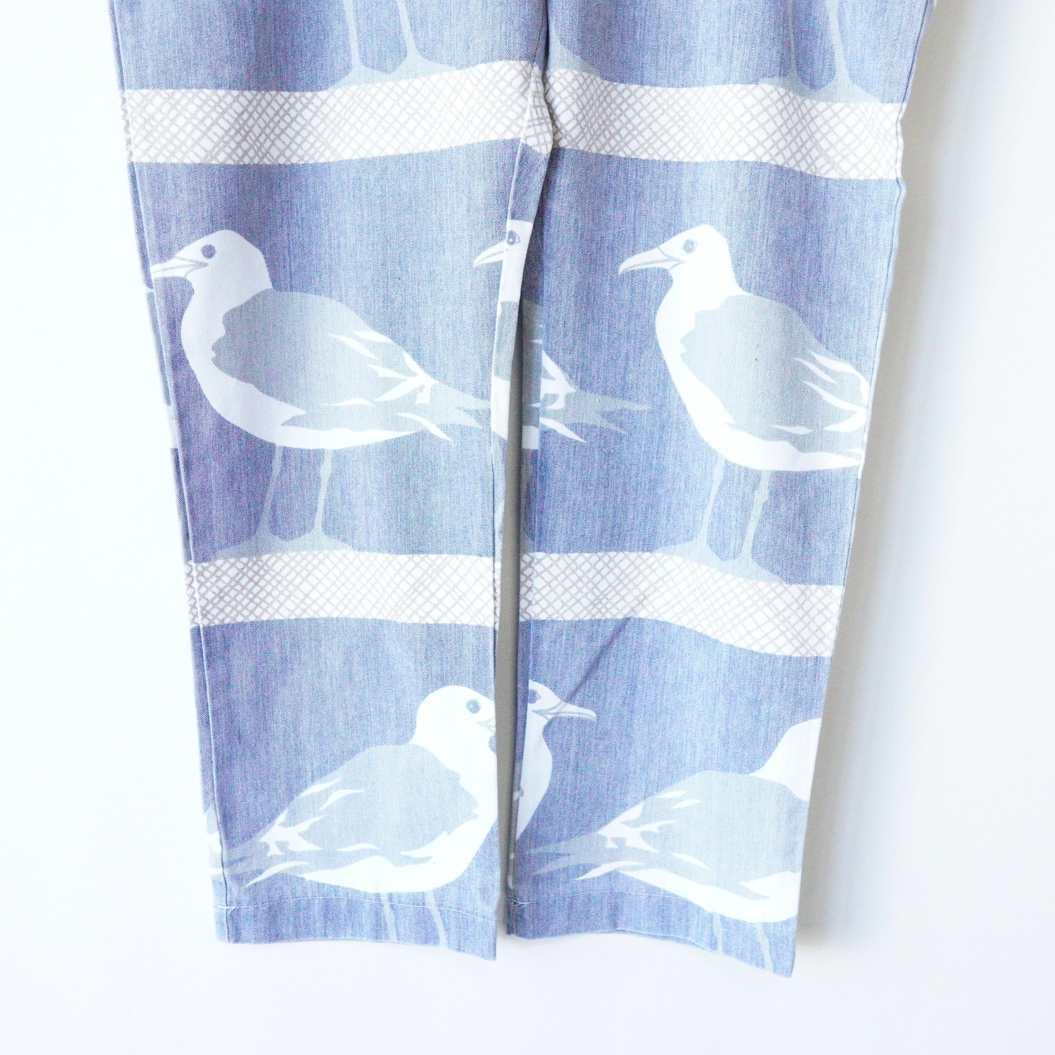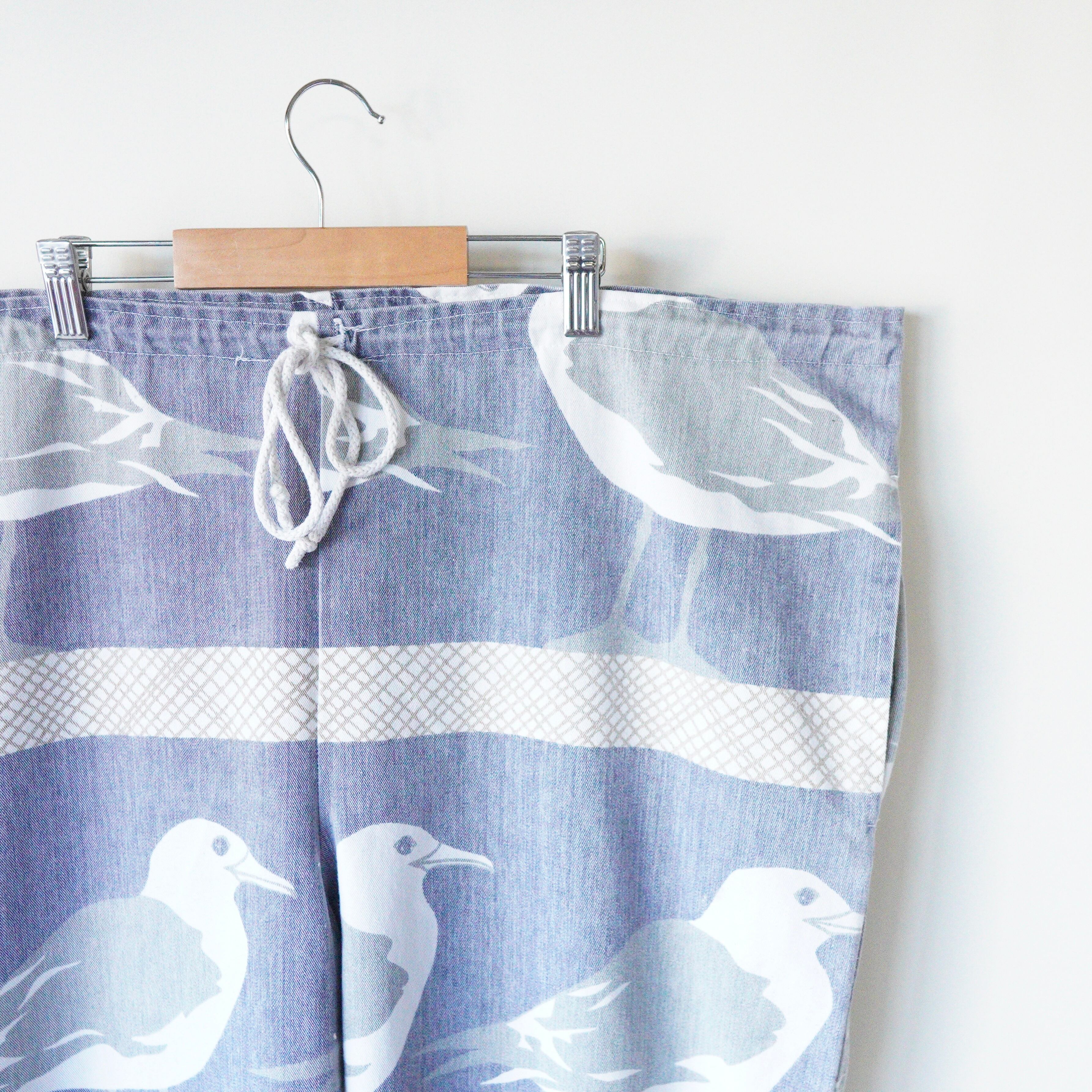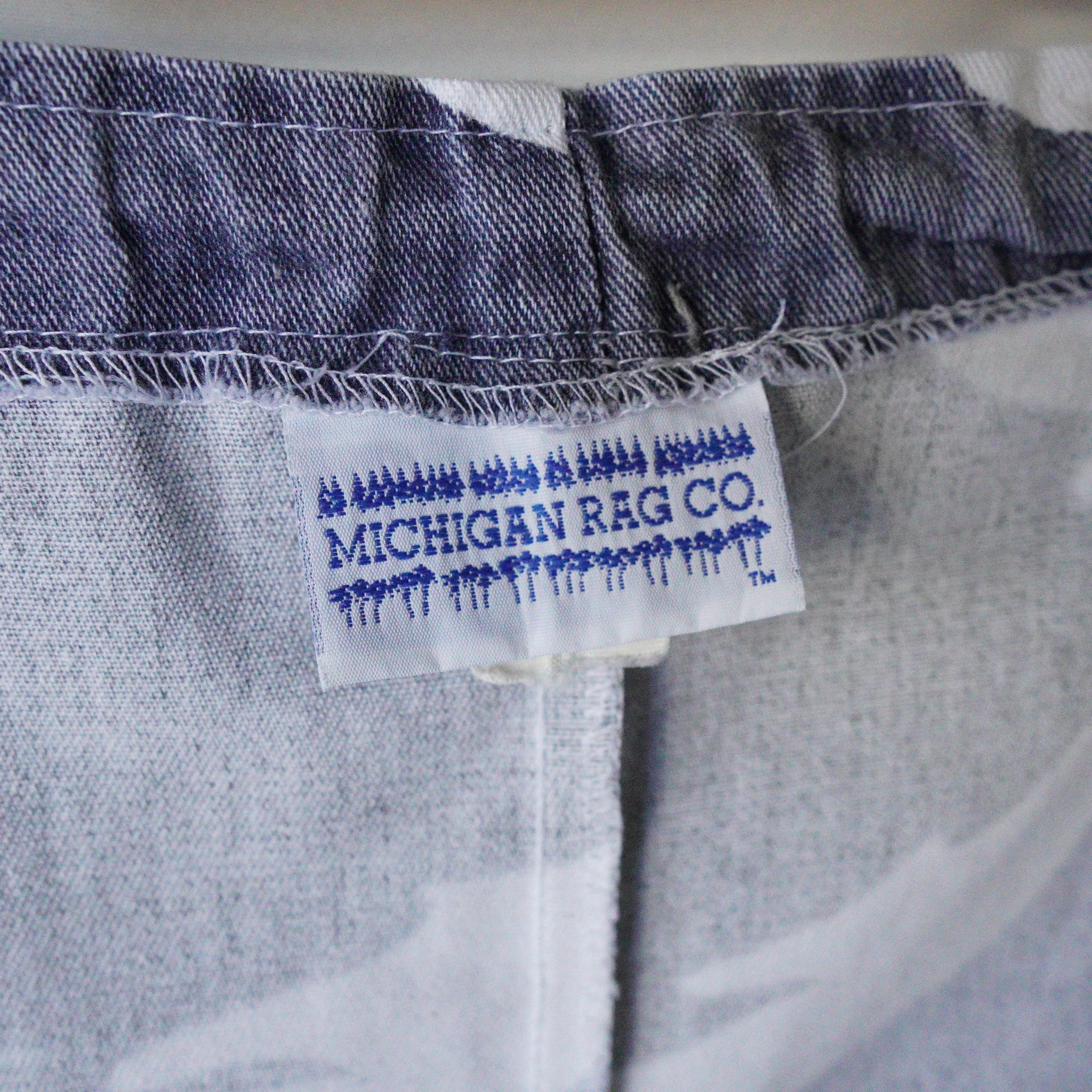 WHAT:"Michigan rag" pants ERA:1990s COLOR:Blue MATERIAL:Cotton50%/Polyester50% ORIGIN:made in usa SIZE:L WAIST(ウエスト):57cm×2(紐で調整可) RISE(股上):34.5cm INSEAM(股下):74.5cm OUTSEAM(総丈):106cm THICKNESS OF THIGH(わたり):35cm HEM WIDTH(裾幅):21cm