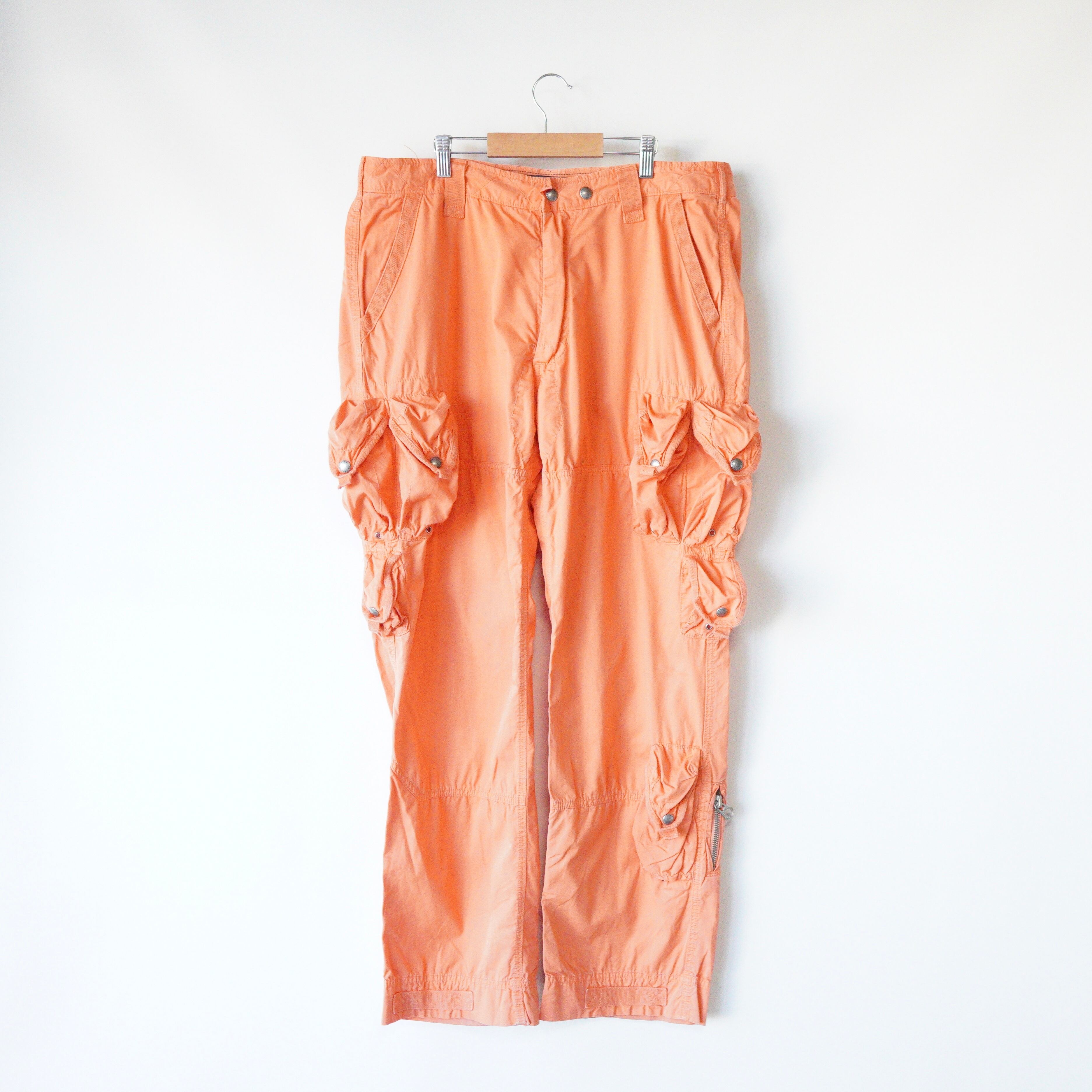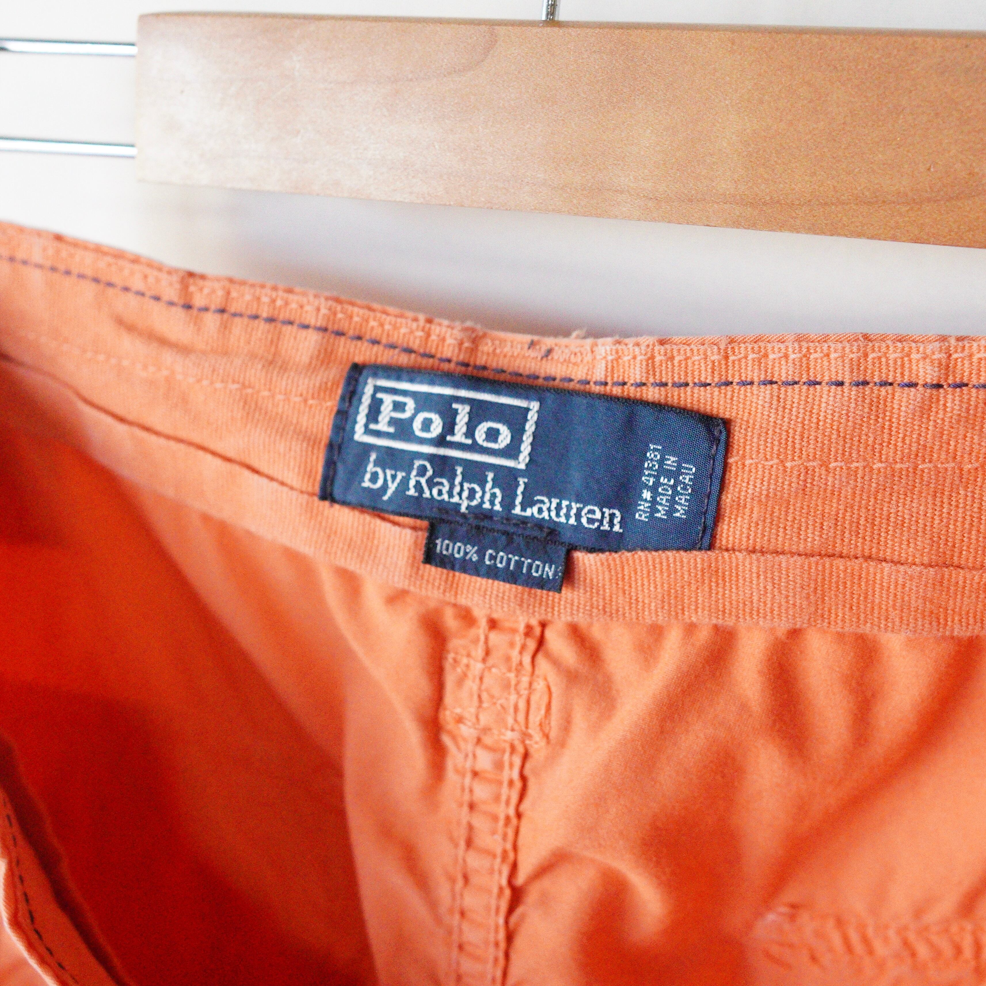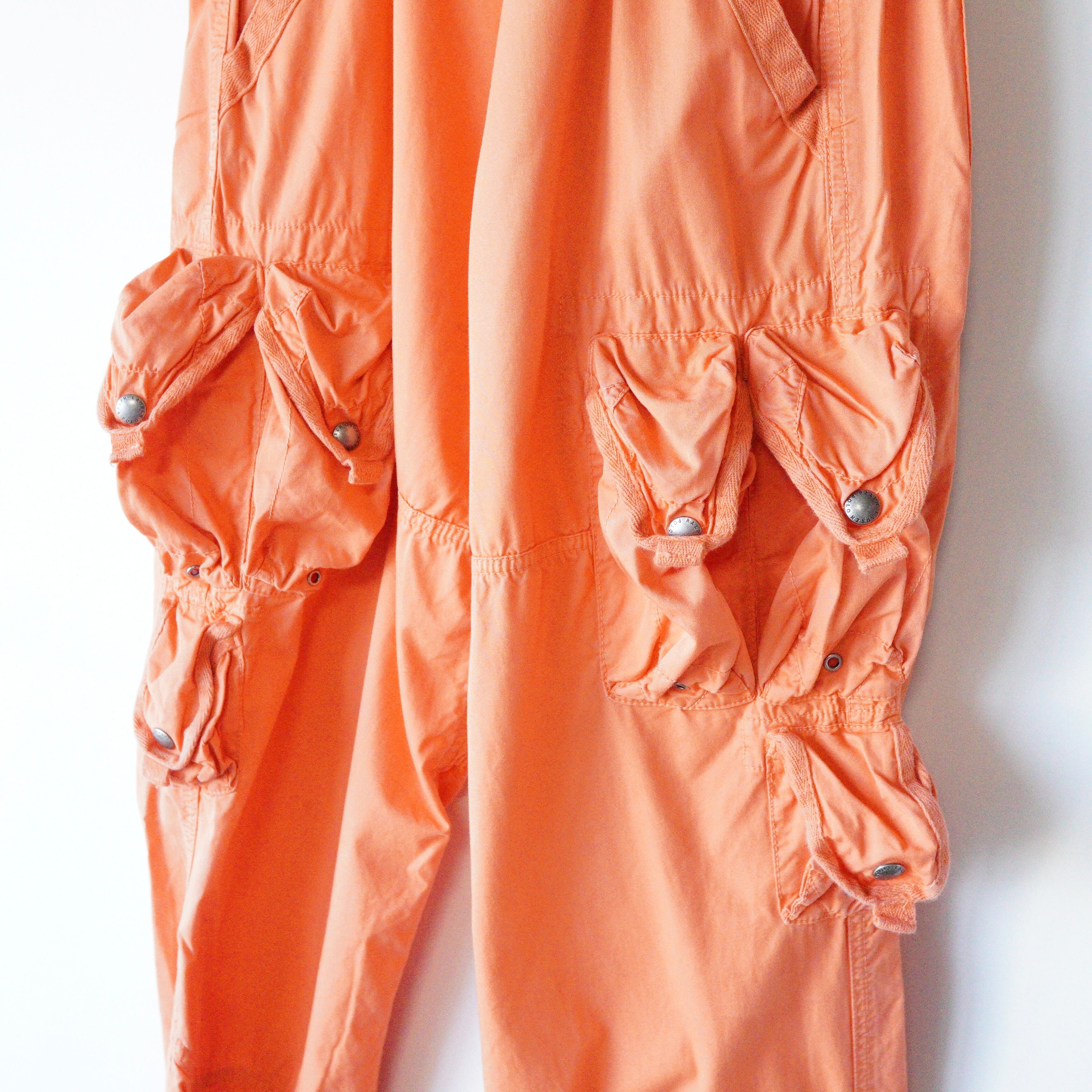WHAT: "Polo by Ralph Lauren"Parachute Pants ERA:1990's~ COLOR:Orange MATERIAL:Cotton100% SIZE:W36/L32 WAIST(ウエスト):47cm×2 RISE(股上):30.5cm INSEAM(股下):79cm OUTSEAM(総丈):110cm THICKNESS OF THIGH(わたり):30cm HEM WIDTH(裾幅):24cm CONDITION:数箇所汚れ