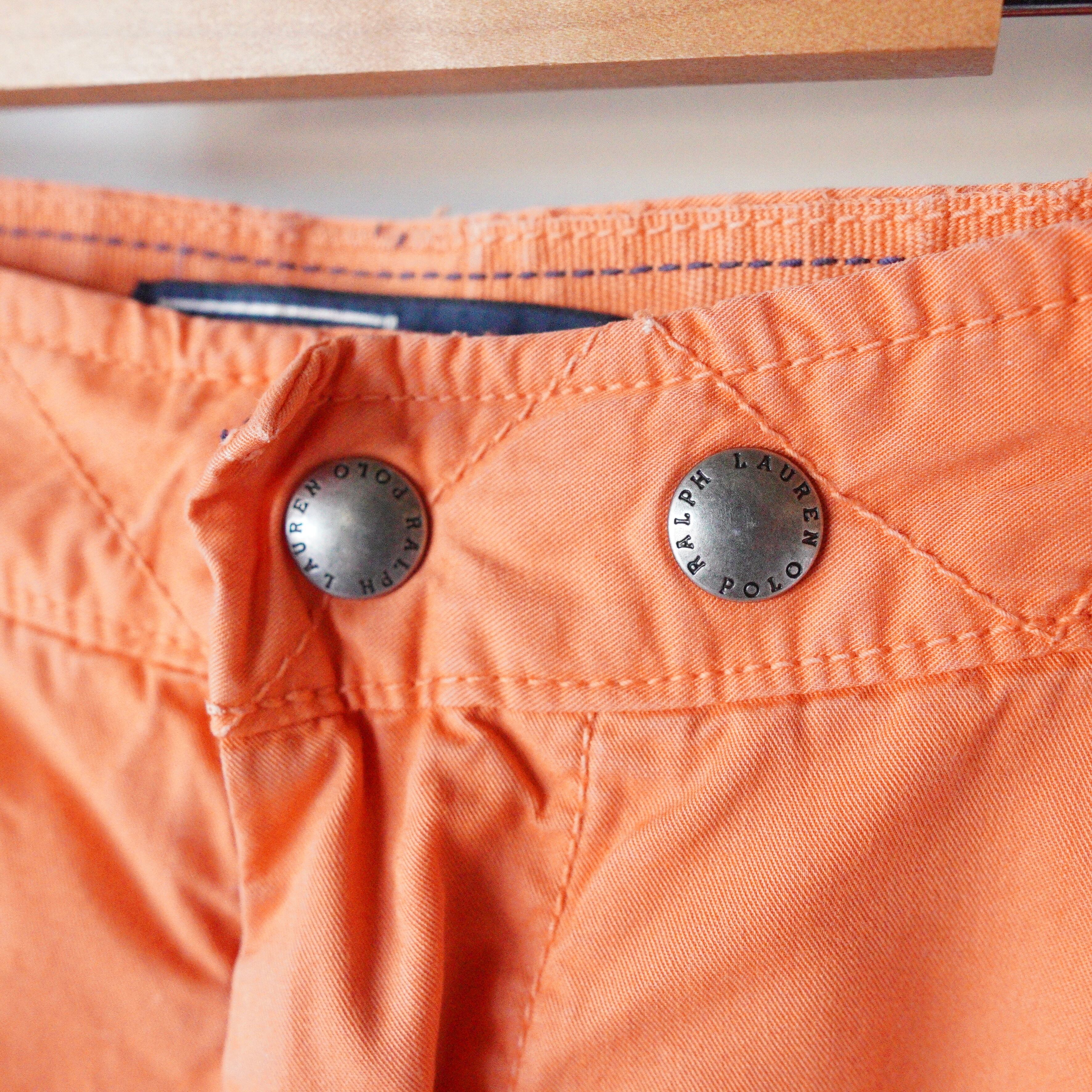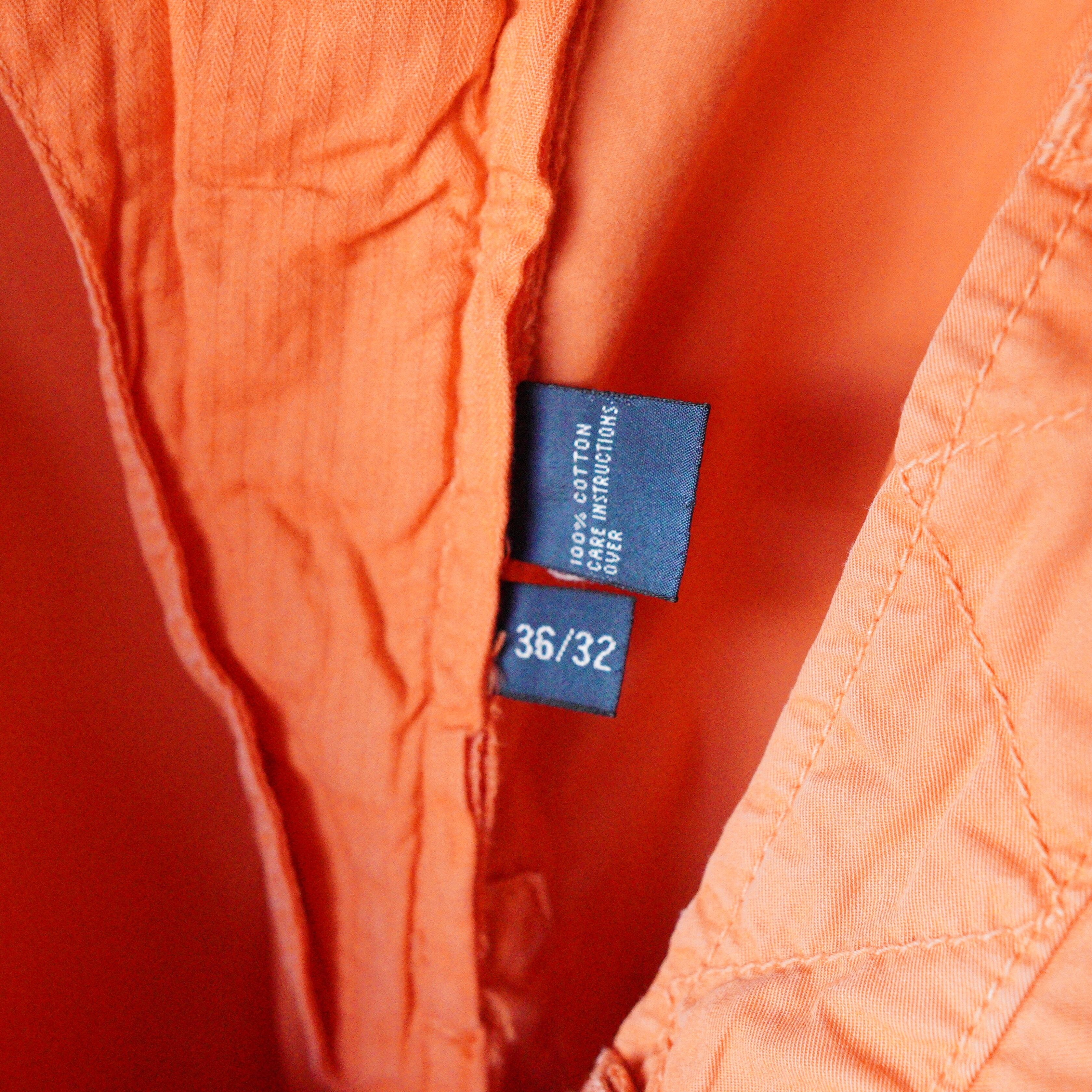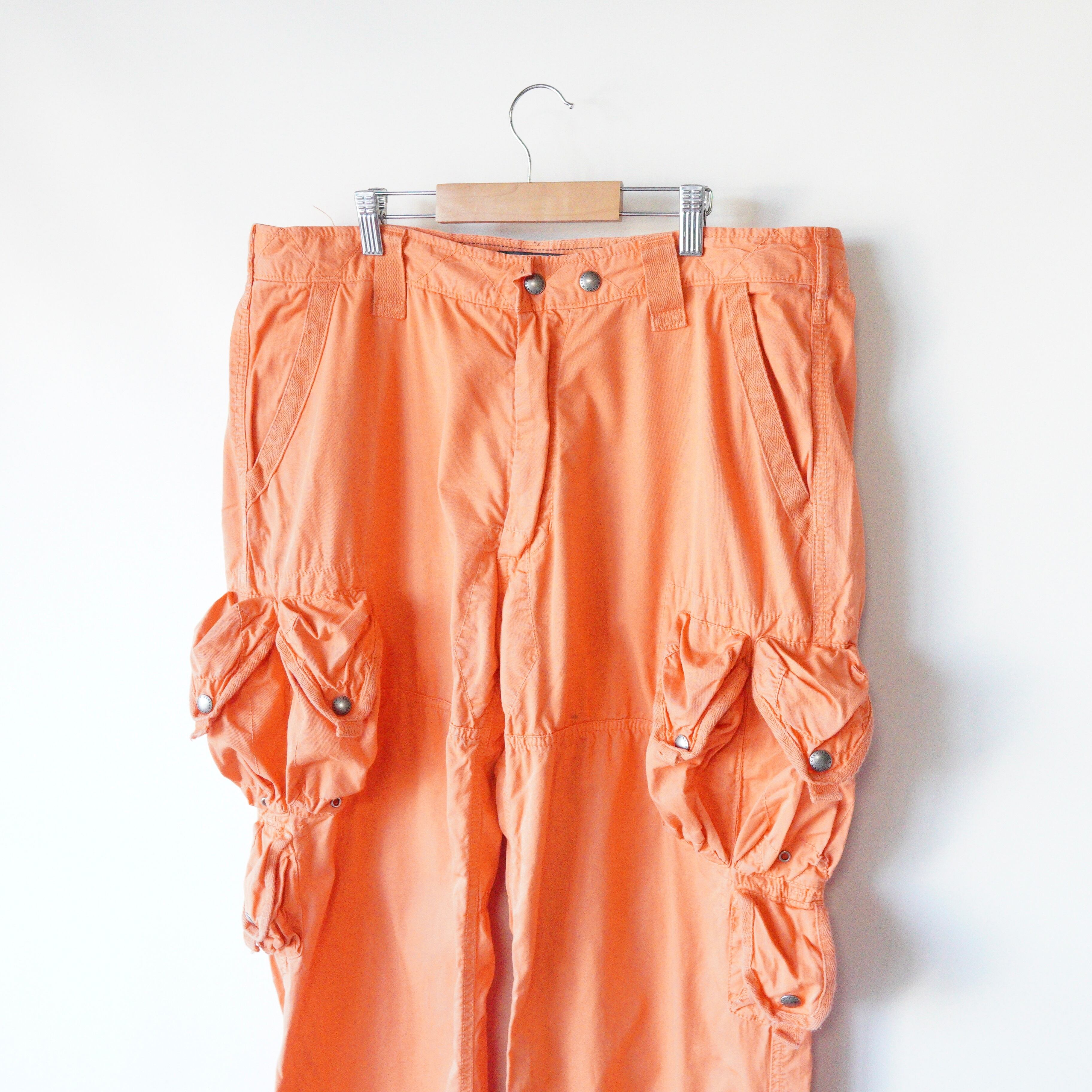 WHAT: "Polo by Ralph Lauren"Parachute Pants ERA:1990's~ COLOR:Orange MATERIAL:Cotton100% SIZE:W36/L32 WAIST(ウエスト):47cm×2 RISE(股上):30.5cm INSEAM(股下):79cm OUTSEAM(総丈):110cm THICKNESS OF THIGH(わたり):30cm HEM WIDTH(裾幅):24cm CONDITION:数箇所汚れ