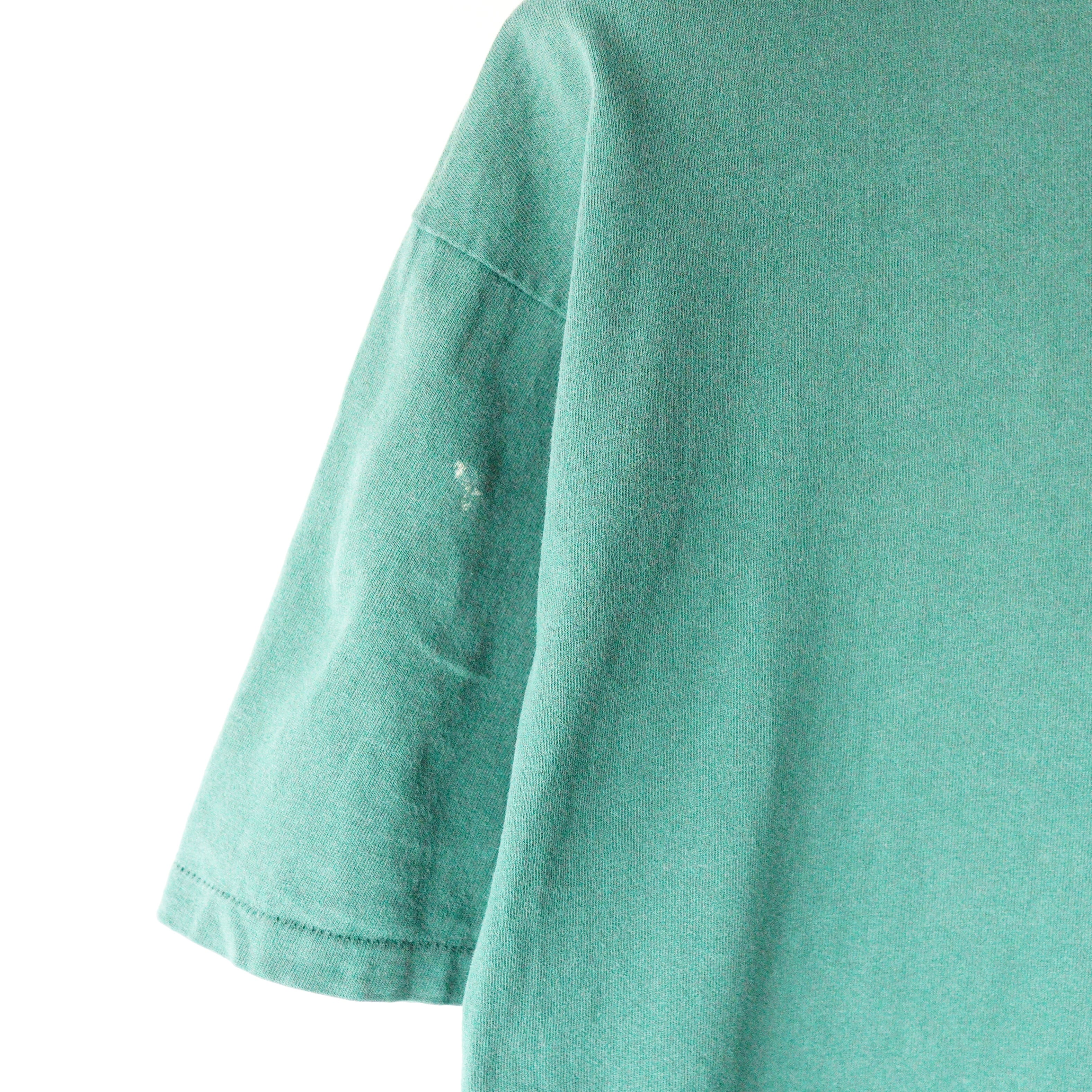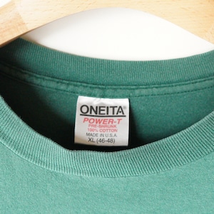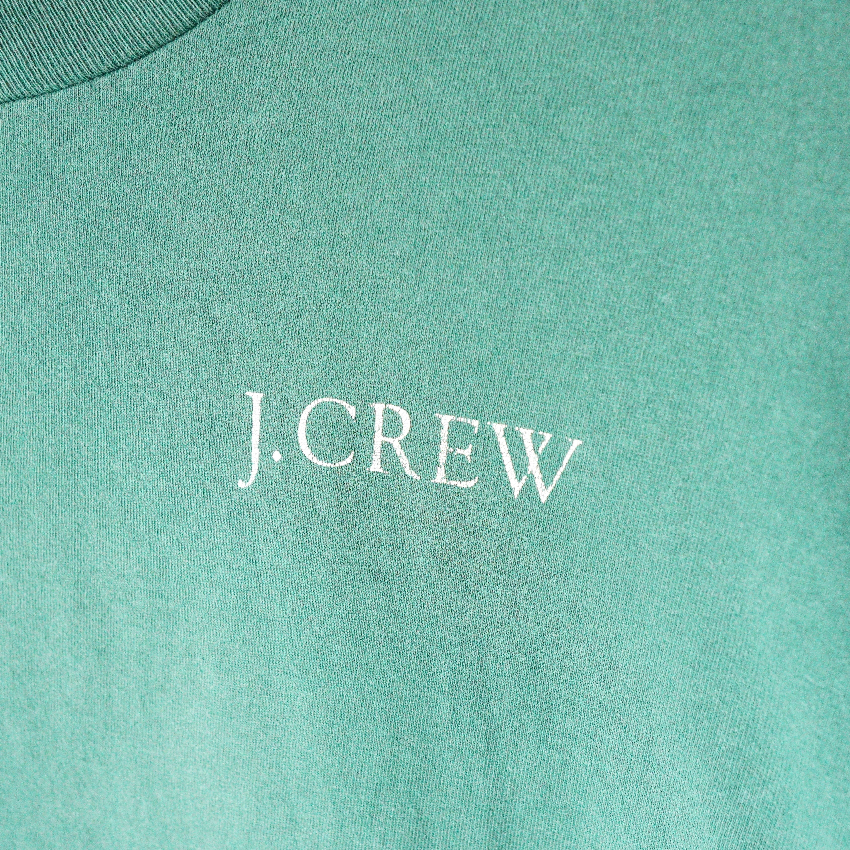 WHAT:"J.CREW" T-shirt LABEL:ONEITA ERA:1990's COLOR:Green MATERIAL:Cotton100% ORIGIN:MADE IN USA SIZE:XL LENGTH(着丈):75cm SHOULDER(肩幅):57cm PIT(身幅):60cm SLEEVE(袖丈):21cm CONDITION:右袖に一部汚れ有