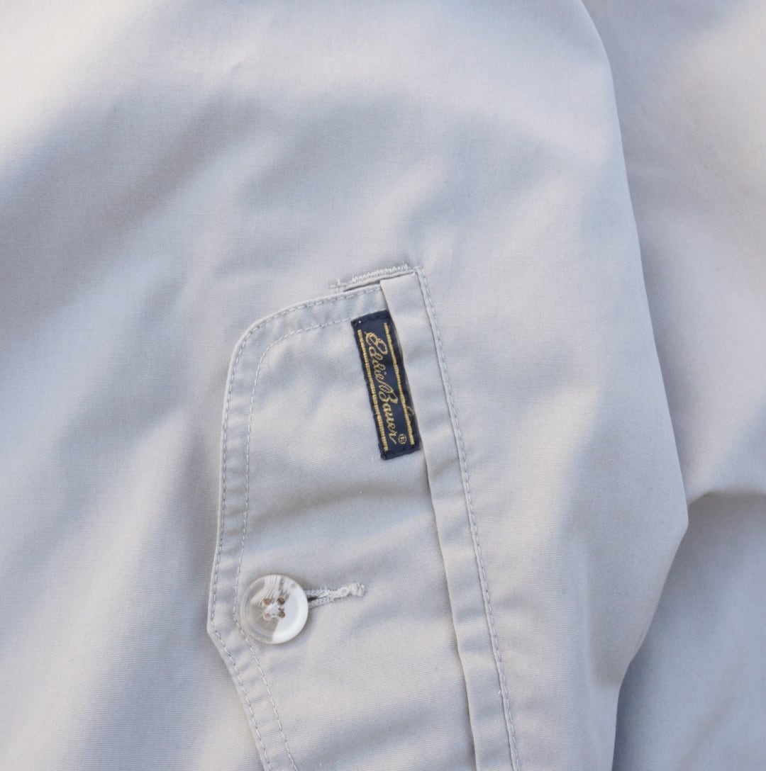 WHAT: "Eddie Bauer" Drizzler Jacket ERA:1980's-1990's COLOR: beige MATERIAL:Polyester65%/Cotton35% SIZE:L LENGTH(着丈):70.5cm SHOULDER(肩幅):63.5cm SLEEVE(袖丈):81cm※ラグラン袖 CONDITION:比較的状態の良いused商品となります。
