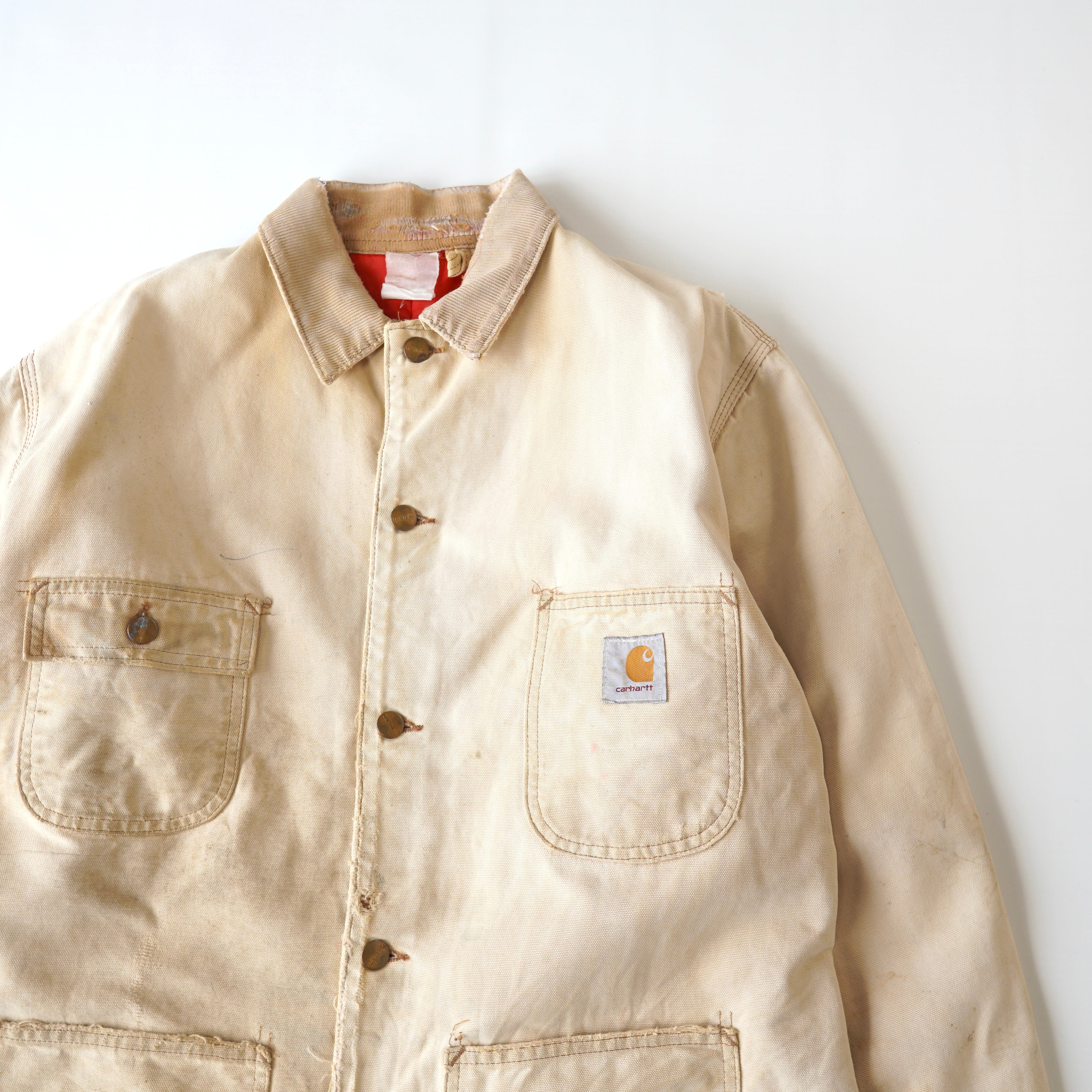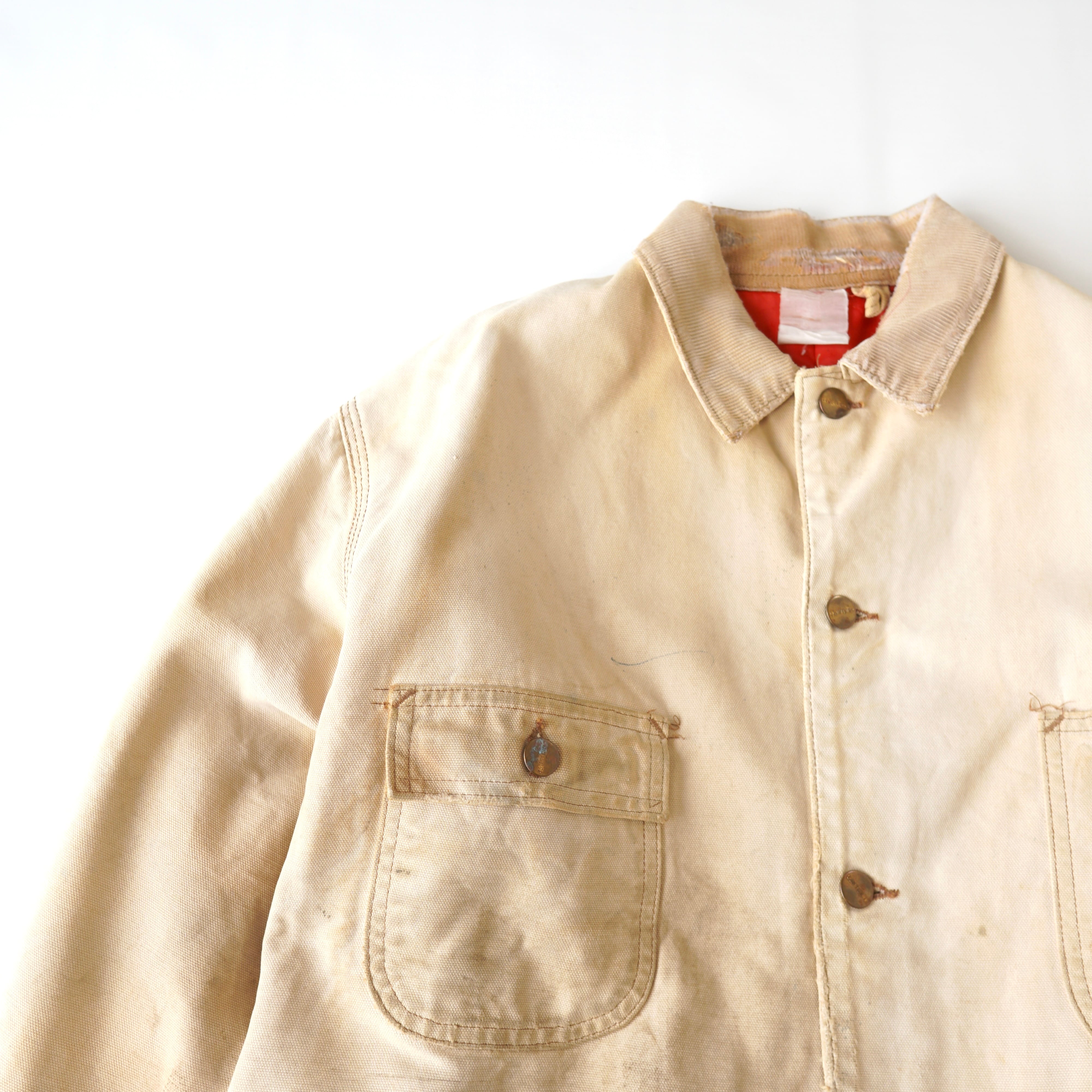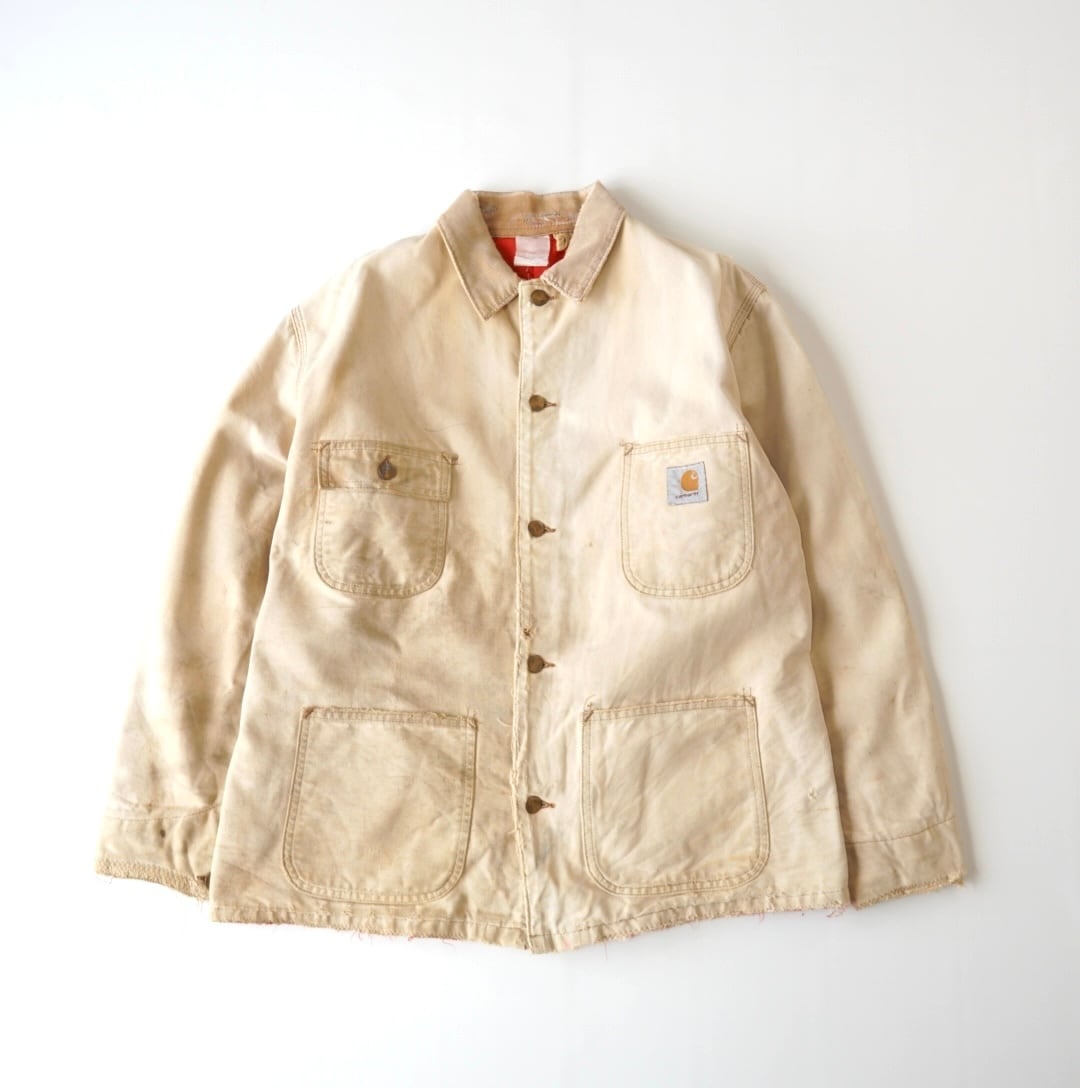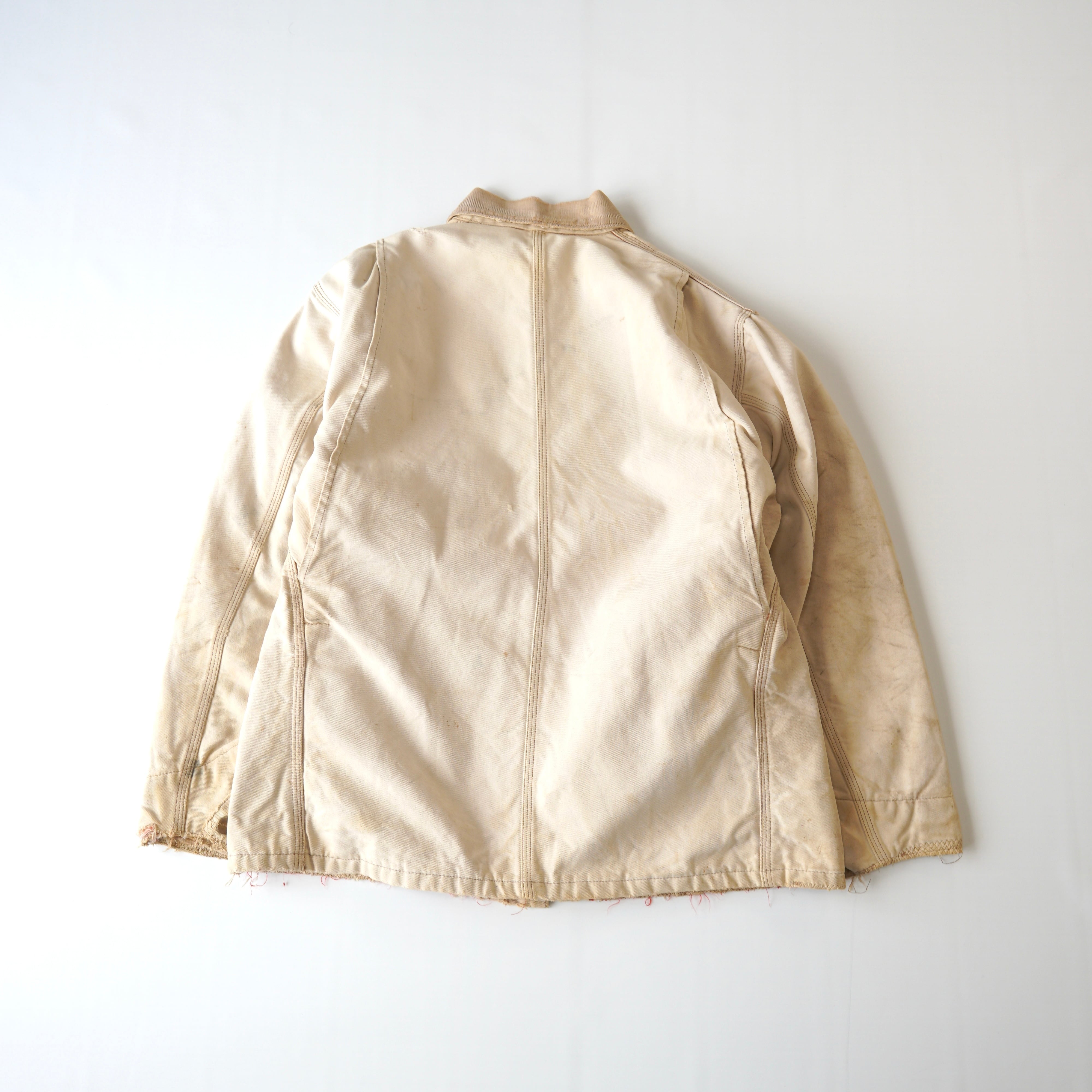 WHAT: "Carhartt" Coverall ERA:1980's COLOR: beige MATERIAL:cotton SIZE:L相当 LENGTH(着丈):73.5cm SHOULDER(肩幅):52cm PIT(身幅):66cm SLEEVE(袖丈):61cm CONDITION:ボロ