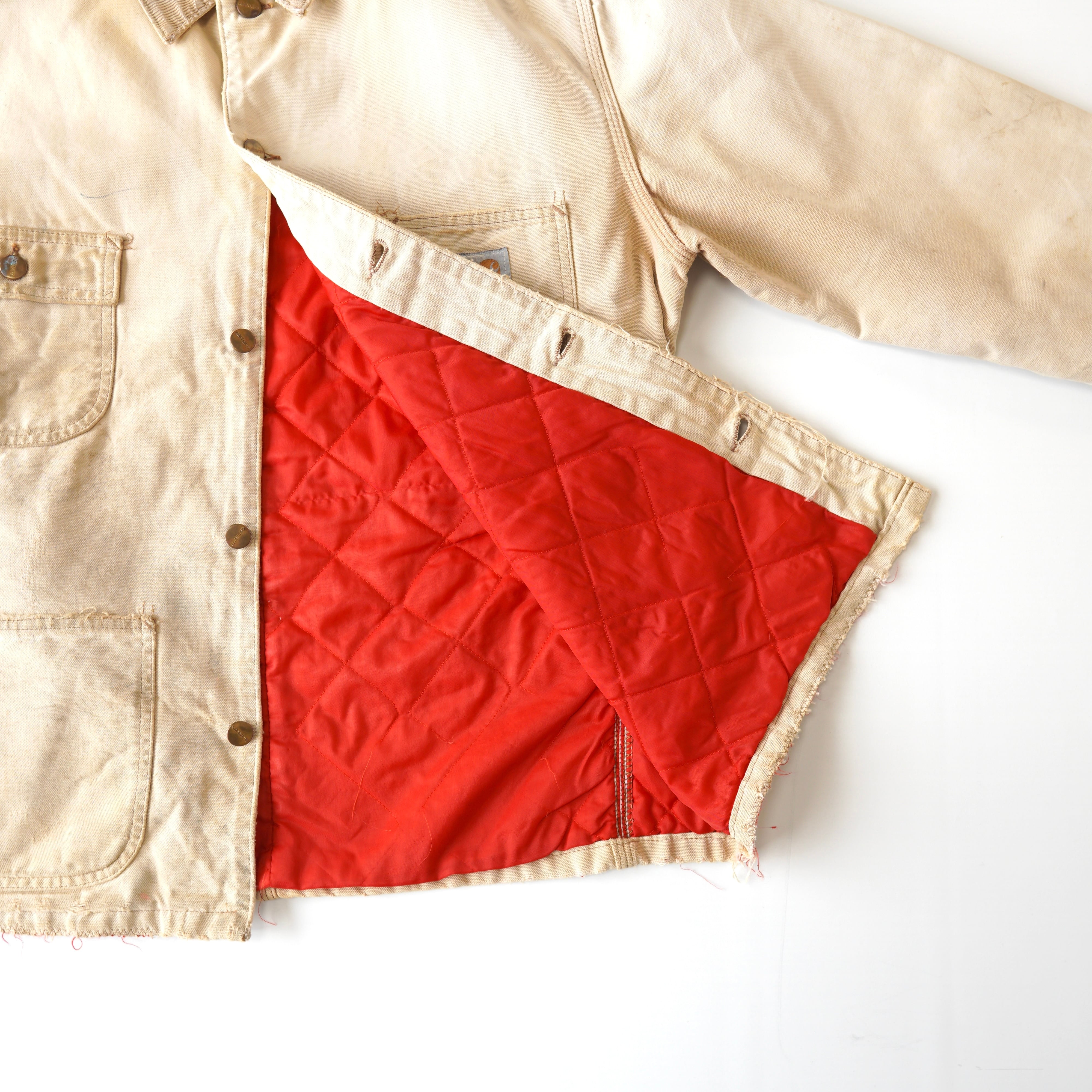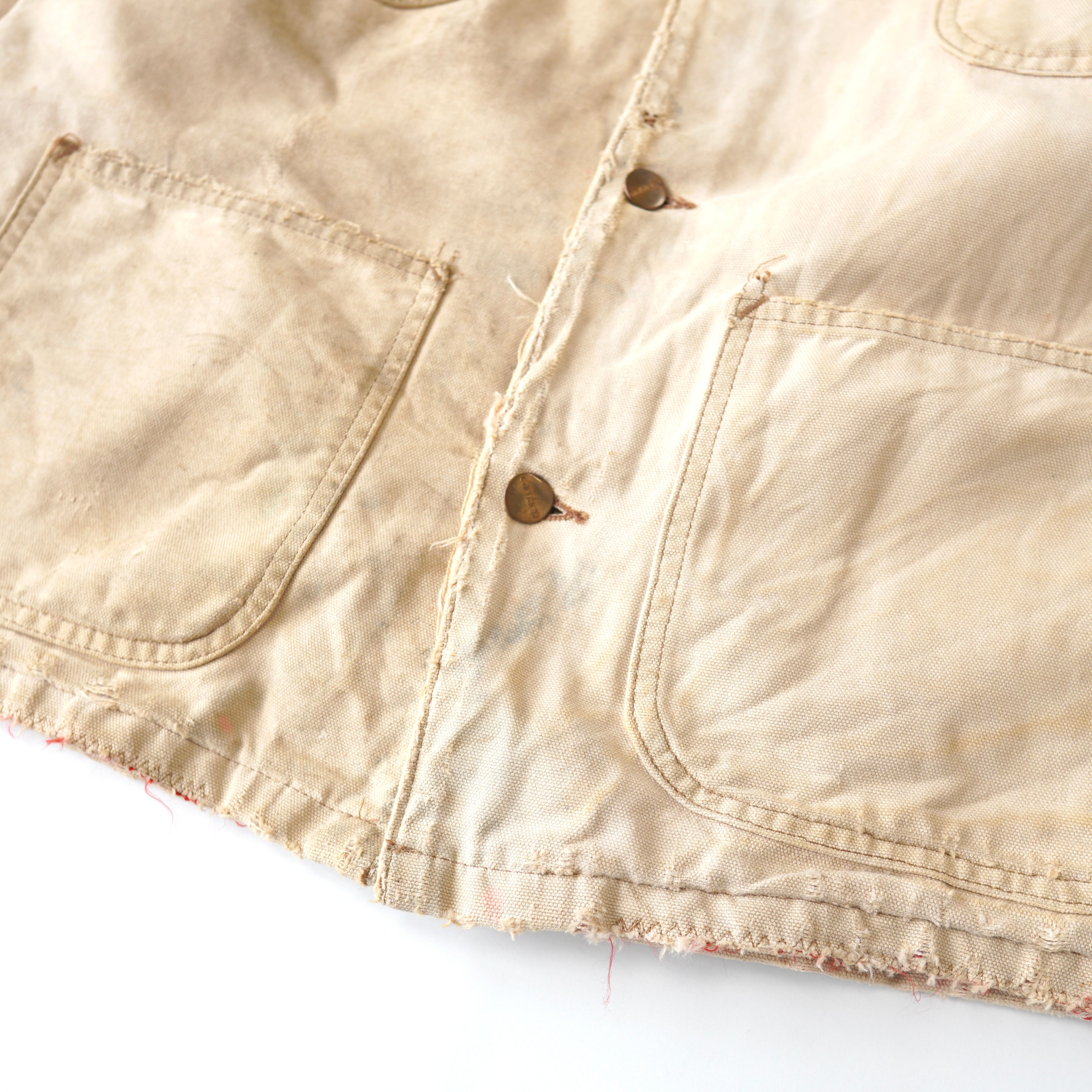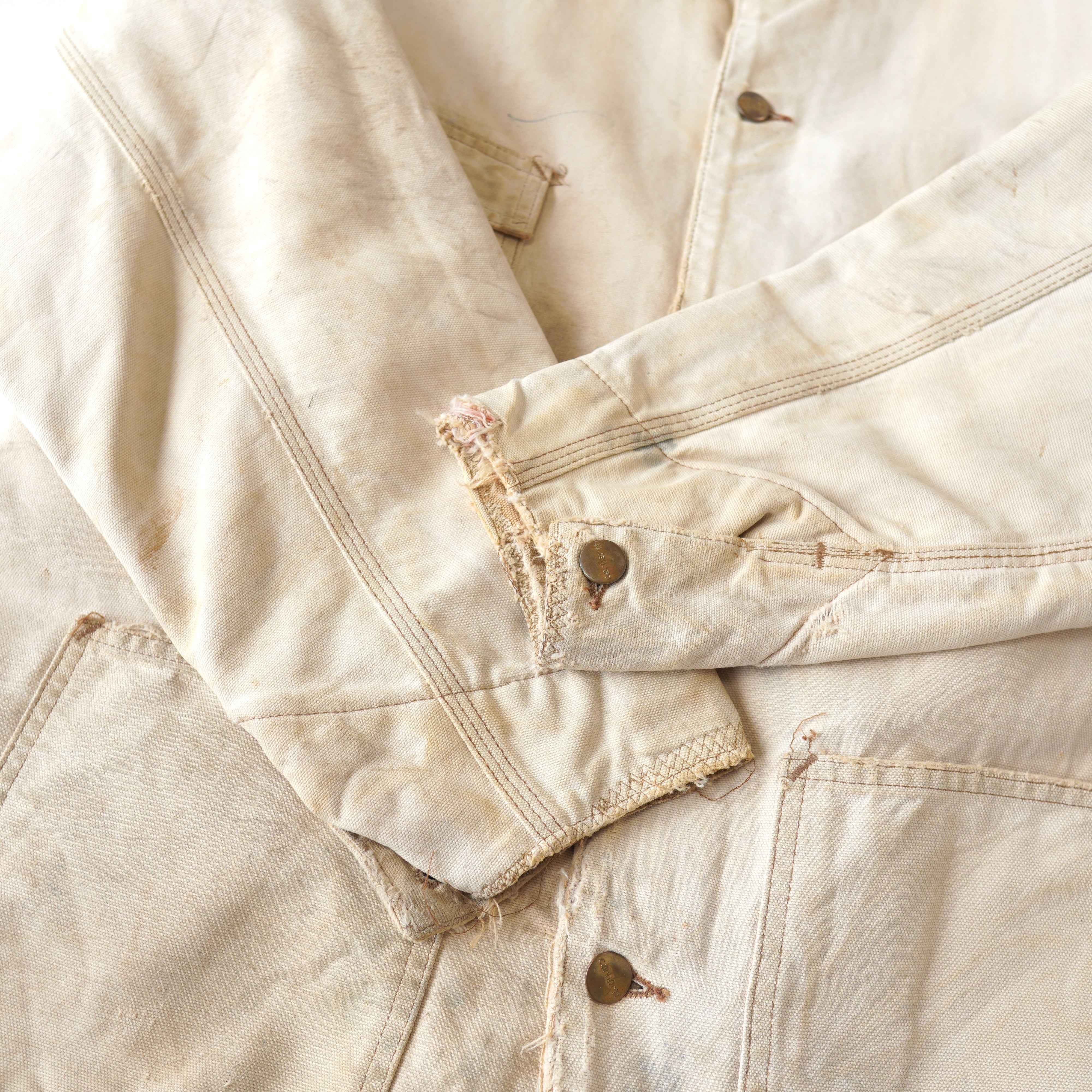 WHAT: "Carhartt" Coverall ERA:1980's COLOR: beige MATERIAL:cotton SIZE:L相当 LENGTH(着丈):73.5cm SHOULDER(肩幅):52cm PIT(身幅):66cm SLEEVE(袖丈):61cm CONDITION:ボロ